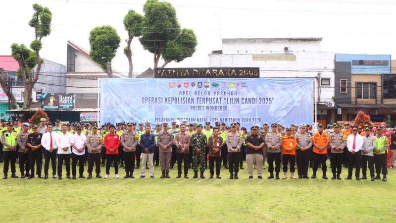 Wonosobo — Polres Wonosobo menggelar Apel Gelar Pasukan Operasi Lilin Candi 2025 di Halaman Mapolres Wonosobo, Jumat (19/12). Apel tersebut dipimpin langsung oleh Kapolres Wonosobo AKBP M. Kasim Akbar Bantilan dan dihadiri Bupati Wonosobo H. Afif Nurhidayat beserta jajaran Forum Koordinasi Pimpinan Daerah (Forkopimda).