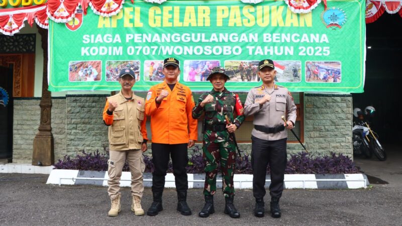 Wonosobo – Kapolres Wonosobo AKBP M. Kasim Akbar Bantilan, S.I.K., M.M. turut hadir dalam Apel Siaga Penanggulangan Bencana yang digelar Kodim 0707/Wonosobo di Makodim, Jumat (8/8/2025).
