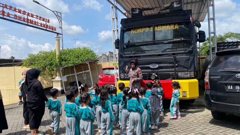 Dalam kegiatan ini, petugas memberikan sejumlah materi pengenalan sejak dini, mulai dari profesi kepolisian, pengenalan kendaraan dinas , hingga alat kelengkapan diri yang digunakan polisi dalam menjalankan tugas.