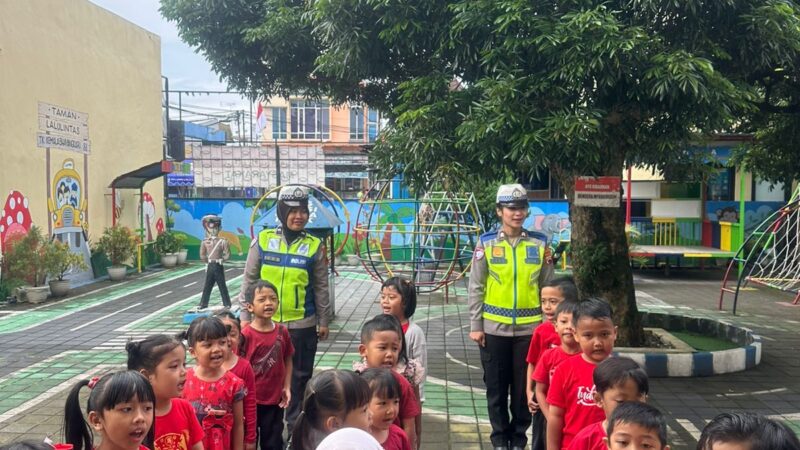 Wonosobo — Satuan Lalu Lintas Polres Wonosobo menggelar kegiatan Polantas Mengajar bagi siswa-siswi TK Bhayangkari 88 Wonosobo, Kamis (12/2). Kegiatan yang berlangsung di lingkungan sekolah tersebut menjadi bagian dari upaya edukasi tertib berlalu lintas sejak usia dini.