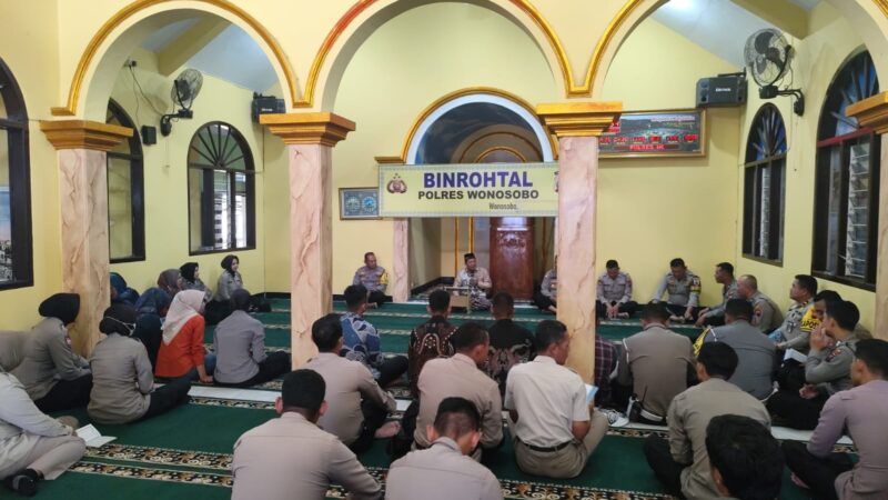 WONOSOBO – Usai pelaksanaan apel pagi dan giat penegakan disiplin oleh Seksi Propam, jajaran Polres Wonosobo melaksanakan kegiatan Pembinaan Rohani dan Mental (Binrohtal) di Masjid Mujahidin, Kamis (24/7/2025).