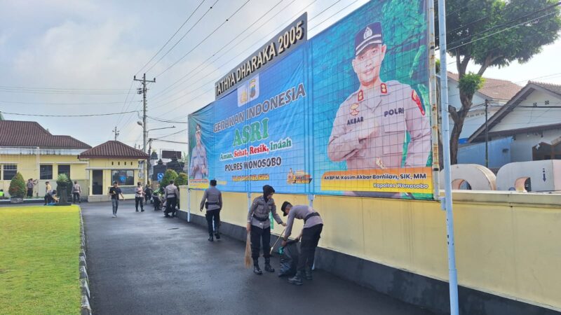 Wonosobo — Polres Wonosobo melaksanakan kegiatan kurvey atau kerja bakti di lingkungan Mapolres Wonosobo sebagai bentuk dukungan terhadap program Presiden Republik Indonesia melalui Gerakan Indonesia Asri (aman, sehat, resik, dan indah).