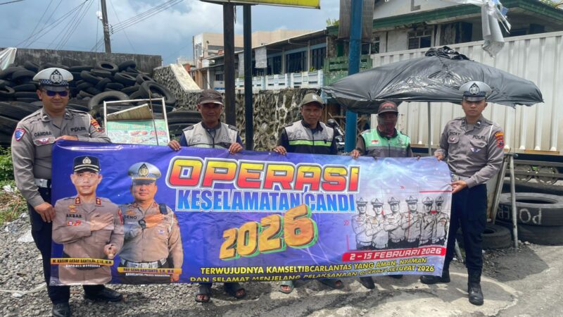 Wonosobo – Satgas Dikmas Lantas melaksanakan kegiatan sosialisasi Operasi Keselamatan Candi 2026 di kawasan Pasar Kertek, Kabupaten Wonosobo, pada Senin pagi, 2 Februari 2026. Kegiatan tersebut menyasar para pedagang, pengunjung pasar, pengemudi ojek online, serta pengemudi mikrobus.