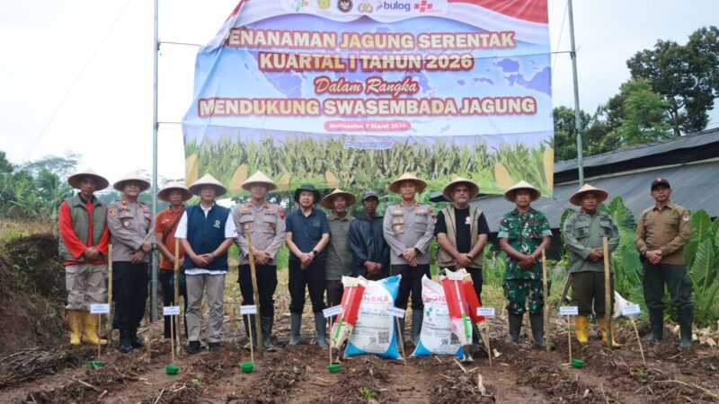 WONOSOBO-Penanaman jagung serentak Kuartal I Tahun 2026 digelar di Dusun Kwarasan, Desa Sukoharjo, Kecamatan Sukoharjo, Kabupaten Wonosobo, Sabtu (7/3/2026) sore. Kegiatan ini merupakan bagian dari program nasional dalam rangka mendukung swasembada jagung sekaligus memperkuat ketahanan pangan.