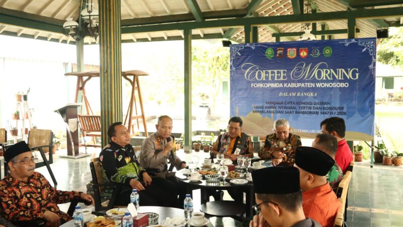 Wonosobo – Kapolres Wonosobo AKBP M. Kasim Akbar Bantilan, S.I.K., M.M. menghadiri kegiatan coffee morning Forum Koordinasi Pimpinan Daerah (Forkopimda) Kabupaten Wonosobo dalam rangka menjaga cipta kondisi daerah yang aman, nyaman, tertib, dan kondusif menjelang serta selama bulan suci Ramadhan 1447 Hijriah/2026 Masehi. Kegiatan ini diikuti oleh unsur Forkopimda, termasuk Bupati Wonosobo, jajaran TNI-Polri, serta instansi terkait, sebagai forum koordinasi membahas dinamika dan isu strategis di wilayah Kabupaten Wonosobo pada hari Kamis tanggal 12 Februari 2026 bertempat di Pendopo Kab. Wonosobo.