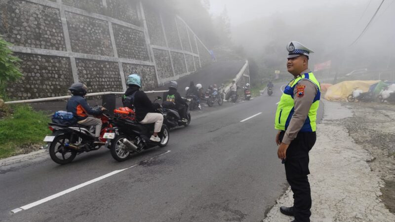 Wonosobo – Personel Satlantas Polres Wonosobo melaksanakan pengamanan jalur di sejumlah titik rawan kemacetan selama akhir pekan. Langkah ini dilakukan untuk memastikan arus lalu lintas tetap lancar dan aman bagi para pengguna jalan yang mengalami peningkatan mobilitas di hari libur.