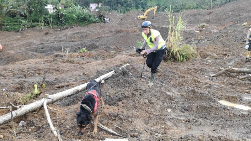 Personel K9 Satsamapta Kerahkan Pelacakan Intensif, Empat Titik Korban Longsor Berhasil Terdeteksi