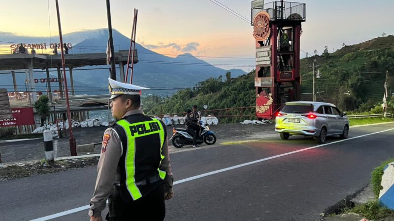 WONOSOBO — Anggota Satuan Lalu Lintas Polres Wonosobo melaksanakan pengamanan jalur wisata Dieng pada Sabtu, 11 April 2026, sejak pukul 05.00 WIB. Kegiatan ini dilakukan sebagai langkah antisipasi terhadap potensi lonjakan wisatawan yang memanfaatkan libur akhir pekan di kawasan dataran tinggi Dieng.