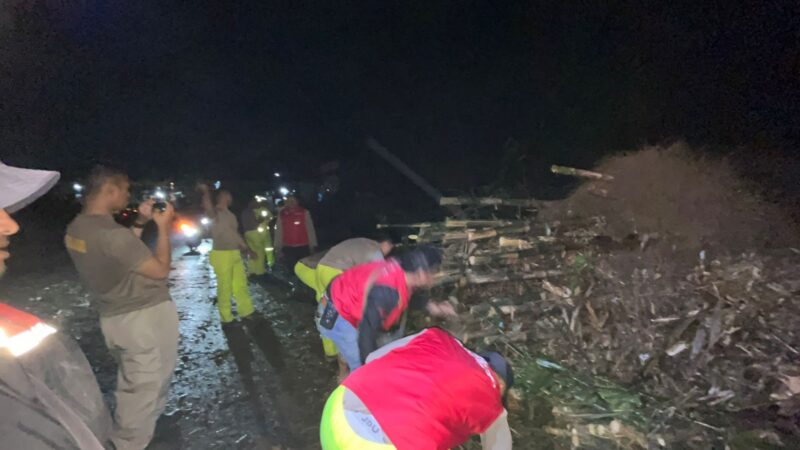 Wonosobo – Petugas gabungan dari Polres Wonosobo, BPBD Kabupaten Wonosobo, relawan SAR Sapuran, dan masyarakat setempat bergerak cepat menindaklanjuti laporan rumpun pohon bambu tumbang yang menutup sebagian ruas jalan raya Wonosobo–Purworejo, tepatnya di jalan Mangir, Desa Jolontoro, Kecamatan Sapuran, pada Kamis (16/10/2025) malam sekitar pukul 20.30 WIB.
