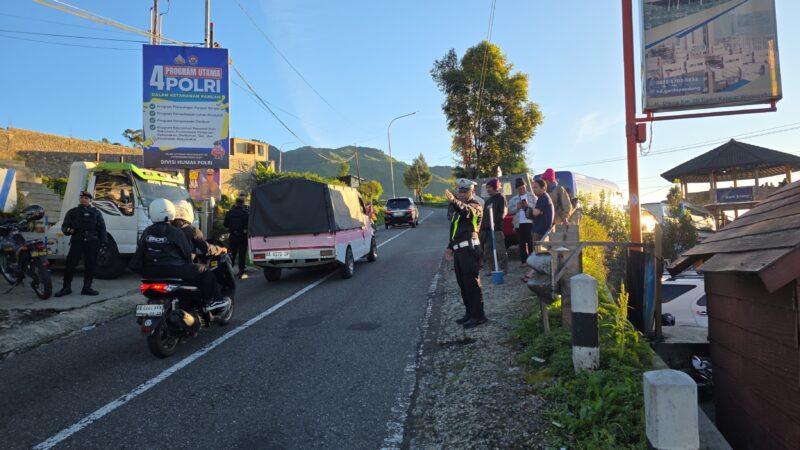 Wonosobo – Kepolisian Resor Wonosobo melakukan pengamanan dan pengaturan arus lalu lintas di kawasan wisata Dieng sejak dini hari, Minggu, 8 Juni 2025. Penempatan personel dimulai pukul 04.00 WIB, seiring meningkatnya wisatawan yang ingin menyaksikan matahari terbit dari kawasan Gardu Pandang hingga area atas dataran tinggi Dieng.