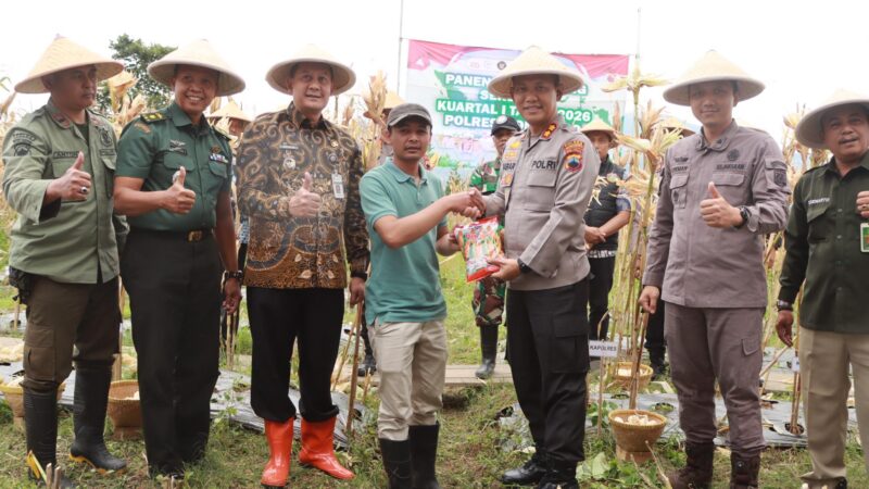 Wonosobo — Polres Wonosobo turut hadir dan mendukung penuh kegiatan Panen Raya Jagung Serentak Kuartal I Tahun 2026 yang dilaksanakan di Dusun Madukoro, Desa Candimulyo, Kecamatan Kertek, Kabupaten Wonosobo, di lahan seluas 5.000 meter persegi. Kegiatan ini merupakan bagian penting dalam mendukung program swasembada pangan Tahun 2026.