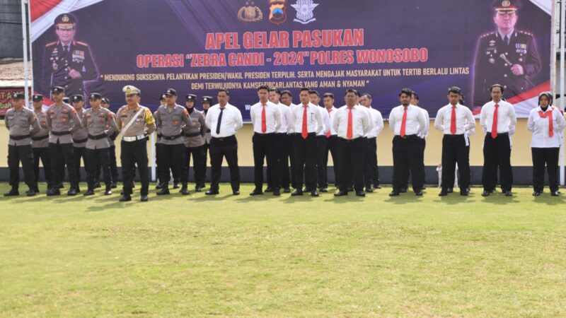 Polres Wonosobo melaksanakan Apel Gelar Pasukan Operasi Zebra Candi 2024 di halaman Mapolres setempat pada Senin (14/10) pagi.