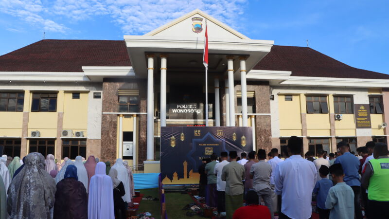 Sholat Id dimulai pukul 06.30 WIB dan berlangsung khidmat. Ustaz Kamaludin, imam Masjid Al-Mujahidin Polres Wonosobo, memimpin jalannya salat. Barisan jemaah tampak rapi, terdiri atas warga sekitar, keluarga anggota polisi, serta personel Polres Wonosobo yang berbaur tanpa sekat.