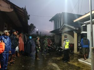 WONOSOBO — Personel Siaga Bhayangkara Polres Wonosobo bersama unsur terkait melaksanakan evakuasi dan penanganan darurat pasca terjadinya angin puting beliung yang melanda Desa Kebrengan, Kecamatan
