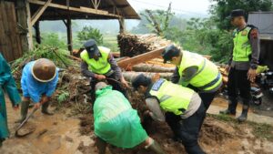 Respons Cepat Polres Wonosobo: Material Longsor Dibersihkan, Warga Kembali Beraktivitas